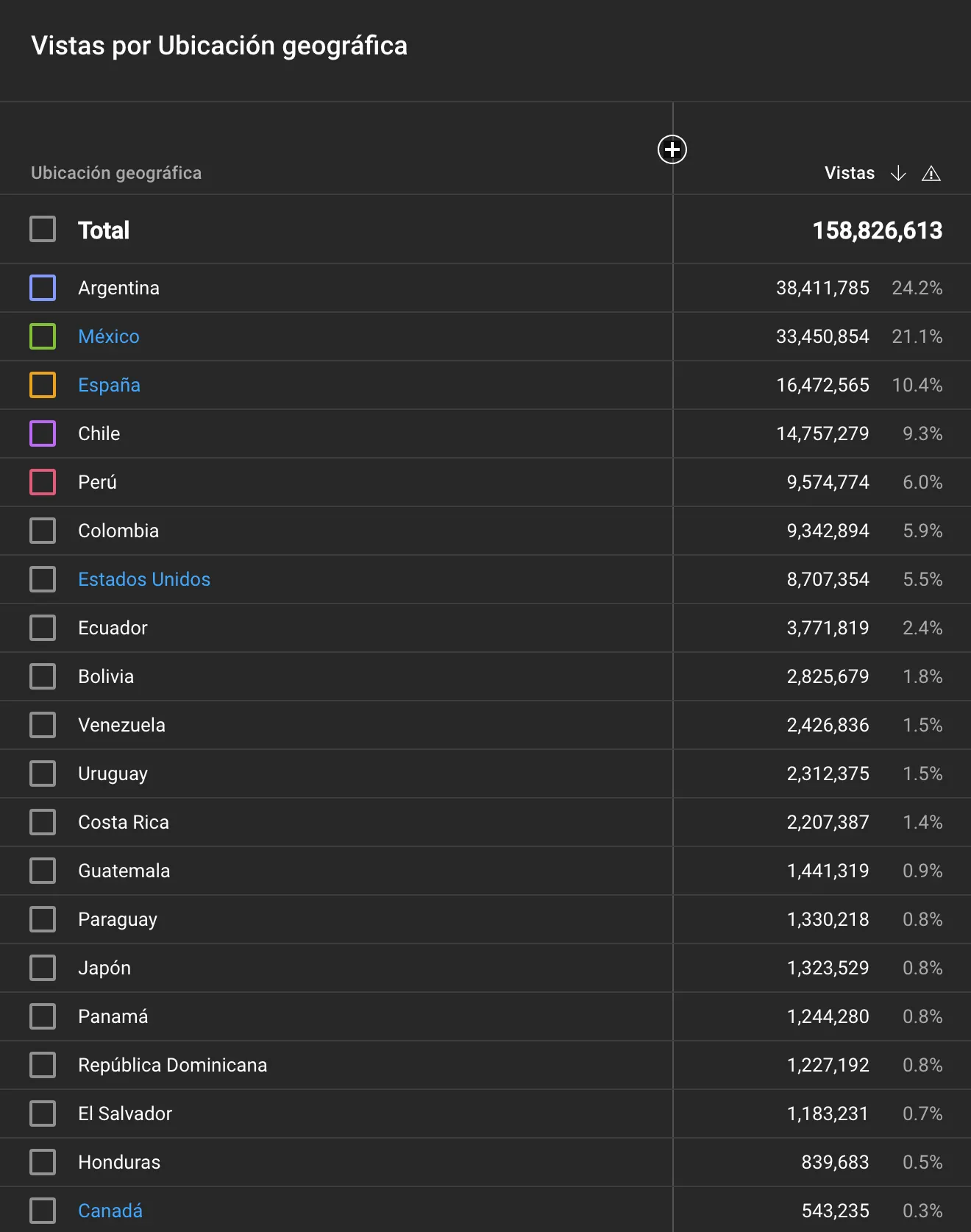 視聴数上位20か国: